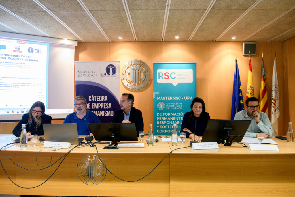 On October 17, 2024, the conference 'Sustainability in Valencian Local Corporations' was held at the Polytechnic University of Valencia, an event promoted by the Master in Corporate Social Responsibility (CSR) of the UPV and the Chair of Business and Humanism of the University of Valencia. This conference brought together experts in sustainable data, public managers and representatives of the business world, divided into two parts: an opening presentation by Tomás González-Cruz, director of the chair, and a round table that addressed different perspectives of sustainability in local corporations.