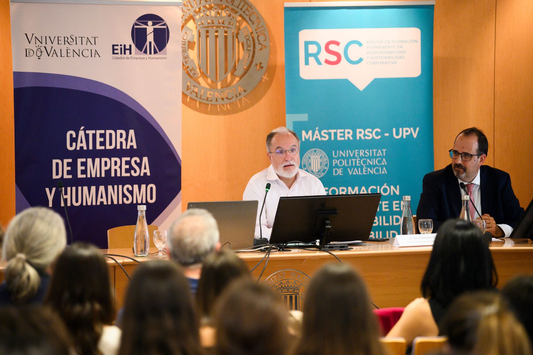 On October 17, 2024, the conference 'Sustainability in Valencian Local Corporations' was held at the Polytechnic University of Valencia, an event promoted by the Master in Corporate Social Responsibility (CSR) of the UPV and the Chair of Business and Humanism of the University of Valencia. This conference brought together experts in sustainable data, public managers and representatives of the business world, divided into two parts: an opening presentation by Tomás González-Cruz, director of the chair, and a round table that addressed different perspectives of sustainability in local corporations.