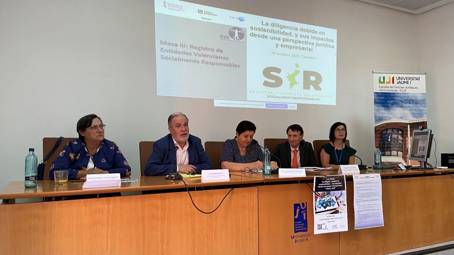 La Universitat Jaume I de Castellón ha organizado la I Jornada de “Diligencia debida en Sostenibilidad, y sus impactos desde una perspectiva Jurídica y Empresarial” en el Salón de Juntas de la Facultad de Ciencias Jurídicas y Económicas. En formato híbrido, estas jornadas han abordado la perspectiva jurídica en la diligencia debida, la perspectiva empresarial y las cadenas de valor, y el Registro de Entidades Socialmente Responsables (REVSR), todo ello en formato de mesa redonda. La coordinación de las Jornadas ha corrido a cargo de María Ángeles Fernández Izquierdo, Catedrática de Economía Financiera y Contabilidad y María Chiara Marullo, Profesora Contratada de Derecho Internacional Privado, ambas miembros del Grupo de investigación SoGReS-MF.